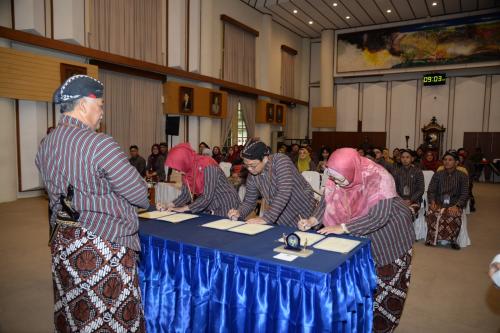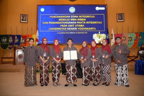 FH UNY mengikuti pencanangan Zona Integritas (ZI) menuju Wilayah Bebas dari Korupsi (WBK) dan Wilayah Birokrasi Bersih dan Melayani (WBBM) yang digelar di Ruang Sidang Utama Rektorat, Kamis (18/9/25). Hal ini merupakan langkah strategis melalui pembangunan Zona Integritas menuju WBK dan WBBM di semua unit kerja. Pencanangan Zona Integritas ditandai dengan penandatanganan pakta integritas oleh Rektor dan para Dekan disaksikan Kepala Bagian Transformasi Organisasi, Biro Organisasi dan Sumber Daya Manusia Kemdiktisaintek Widodo Budi Siswanto, M.Pd. serta Jaksa Ahli Madya Kejaksaan Tinggi DIY Pramono Mulyo, M.Hum.